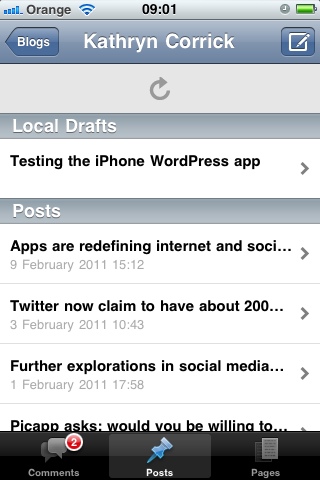 The application takes you through step-by-step setting up posting, allowing you to post from multiple blogs via one username. Once through to the admin area you have three tabs – Comments, Post and Pages.